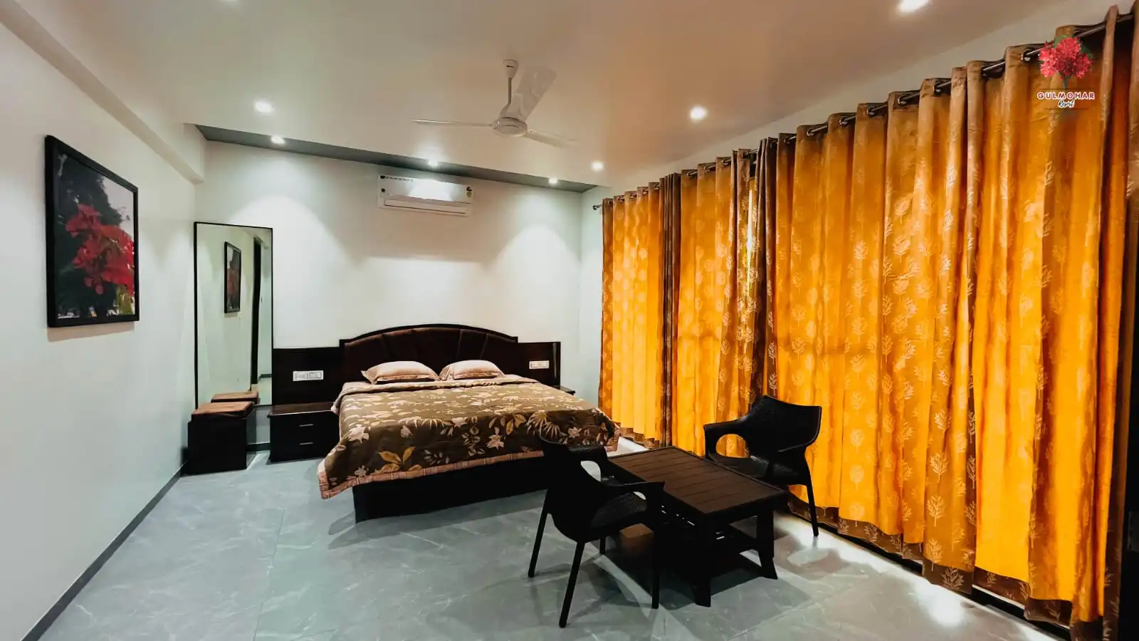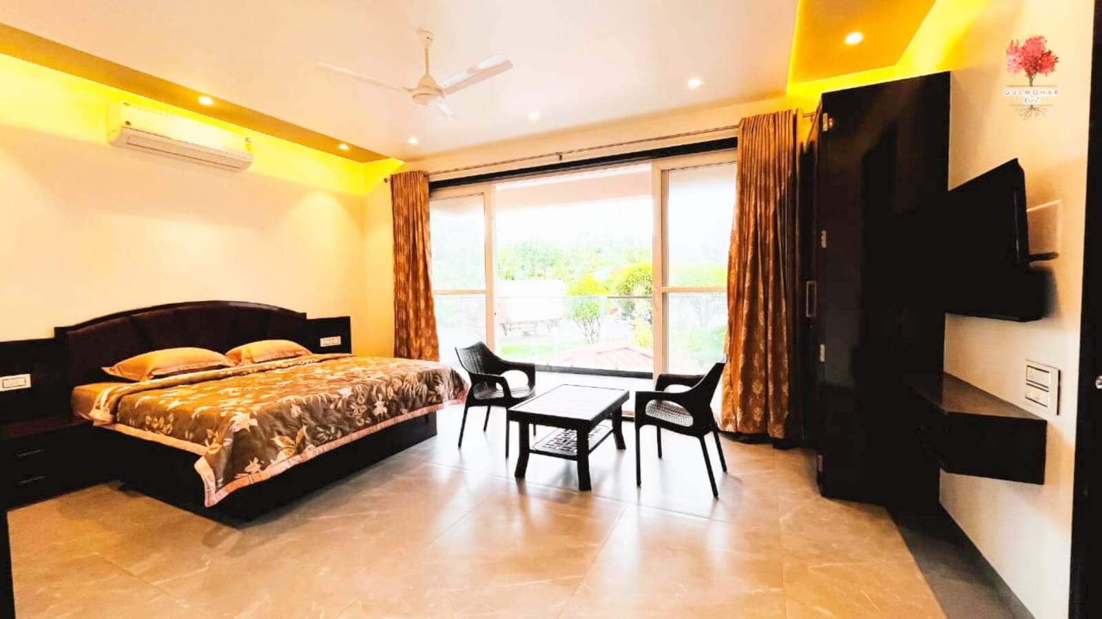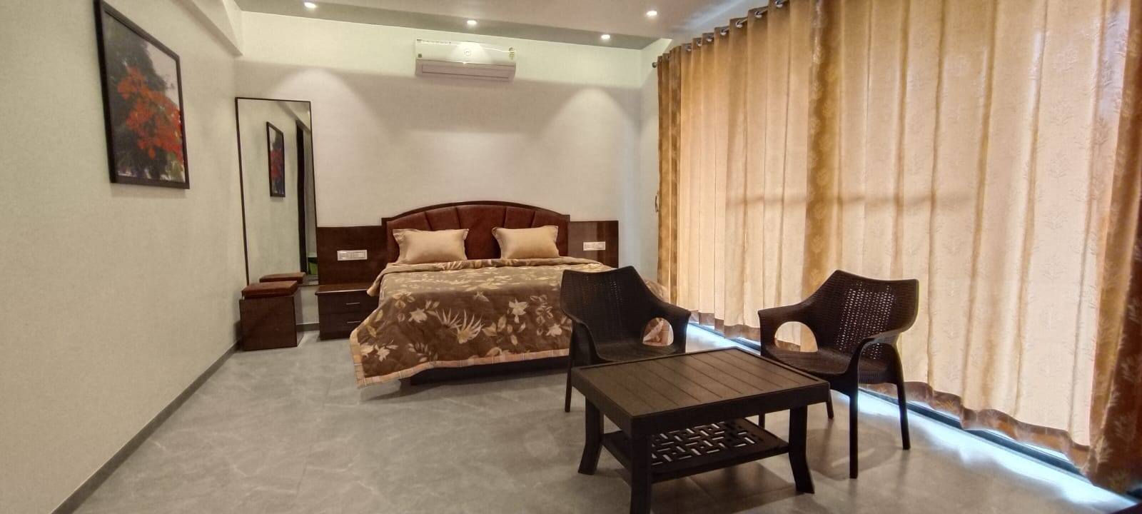 We have 2 ultra luxurious suites with a hall and a master bedroom.Hall is connected with a western washroom and master bedroom has a big balcony and a lavish bathroom equipped with a jacuzzi for 2-3 adults. Rates- varies between 6999-8999 depending upon season/offseason and weekday/weekend PS: contact on given number to confirm the rates