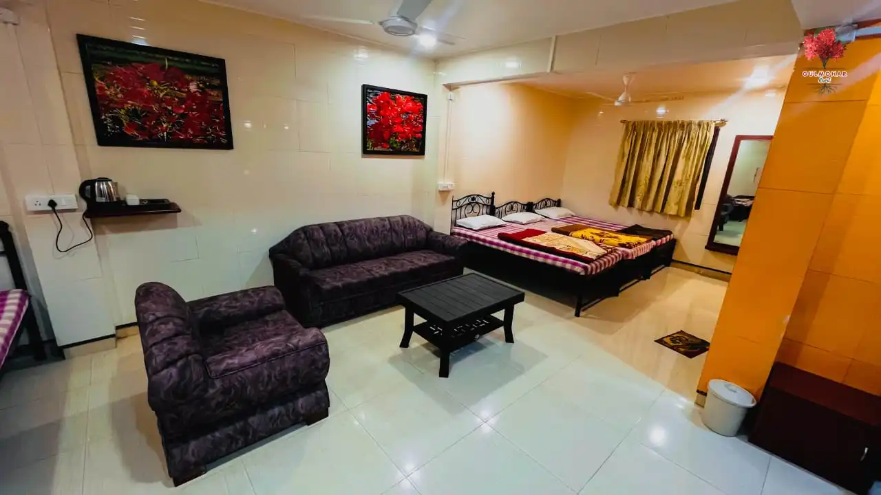 We have a jumbo room for big family with 6 beds suitable for 6adults+kids. A spacious area with two bathrooms and a sitting area and open area to play games or cards Rates- varies between 6000-8000 depending upon season/offseason and weekday/weekend