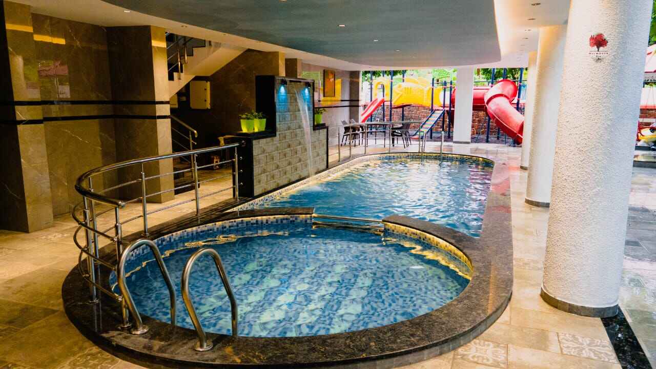 Gulmohar is a MTDC approved privately owned luxury family resort and spa. We provide different types of clean and hygienic rooms suitable to your taste and budget with fresh home cooked food of a wide variety away from the overcrowded points of panchgani and mahabaleshwar and just a kilometre walk away from the famous MAPRO GARDEN. GULMOHAR is located in mitha estate and is a roadside decent property equipped with a swimming pool with baby pool,steambath , jacuzzi and many more..